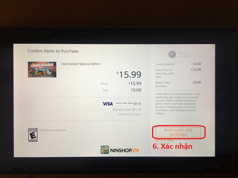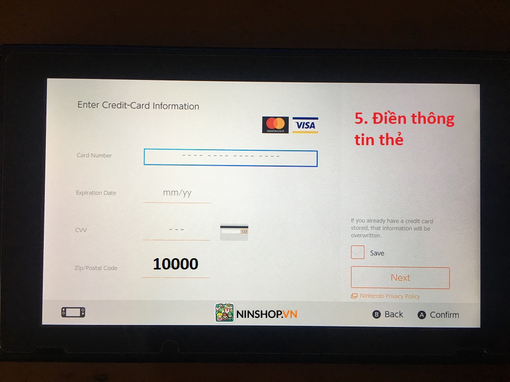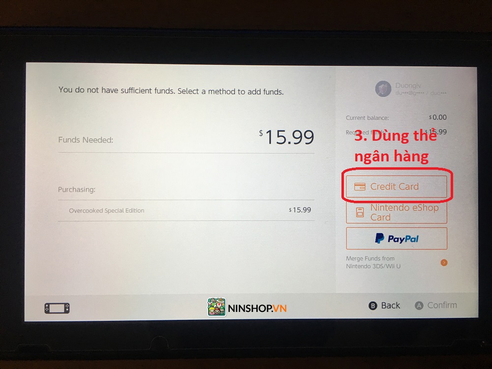 - Cách 1: mua các loại thẻ trả trước mệnh giá $5, $10, $20,... của nintendo rồi nạp sẵn vào tài khoản.